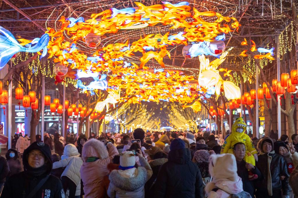 1月23日,游客在哈尔滨市中央大街游玩。新华社记者 谢剑飞 摄