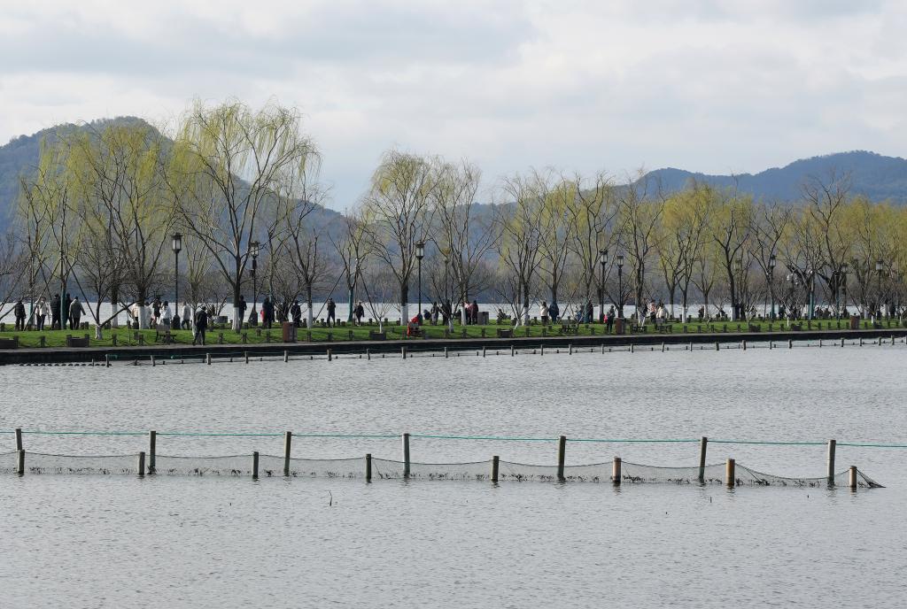 3月4日,游客行走在杭州西湖白堤上。春日,杭州西湖景区花红柳绿,一派春光。新华社记者 韩传号 摄
