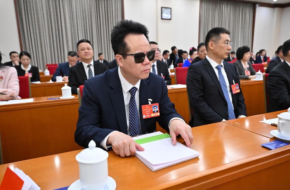 3月5日,全国人大代表王永澄在福建代表团全体会议上认真听会。新华社记者 岳月伟 摄