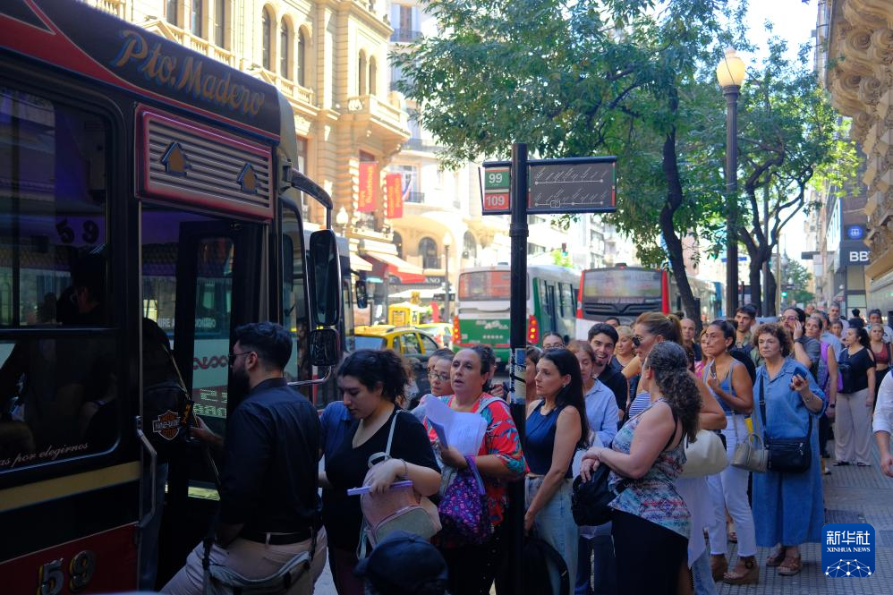 3月5日,在阿根廷首都布宜诺斯艾利斯,人们排队搭乘公交车。新华社记者 张铎 摄