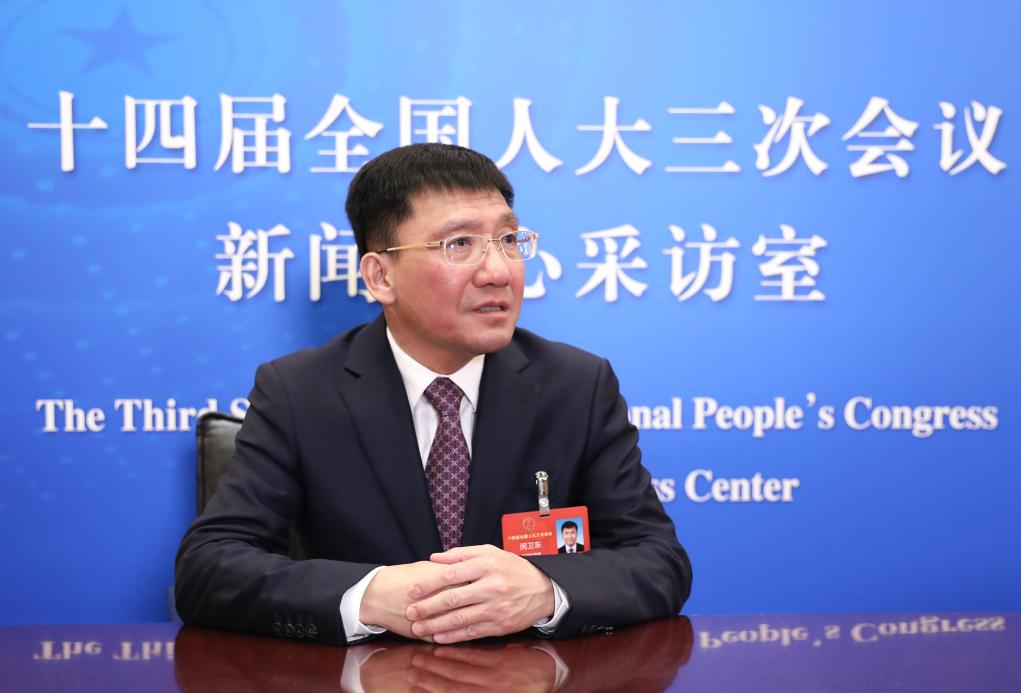 3月4日,全国人大代表、南昌大学元宇宙研究院院长闵卫东在十四届全国人大三次会议江西代表团驻地接受采访。新华社记者 熊争艳 摄