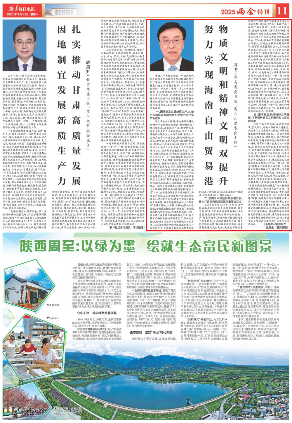 习近平总书记强调,越是深化改革、扩大开放,越要加强精神文明建设。我们牢记习近平总书记嘱托,持续深化拓展精神文明建设成果。一是倡导崇德守法、诚信友善、积极向上、开放包容的社会风尚。坚持不懈用党的创新理论凝心铸魂,培育和弘扬社会主义核心价值观,以创建海南文明岛五年行动为抓手,统筹推进文明培育、文明实践、文明创建,着力培育时代新风新貌。二是丰富城乡群众精神文化生活。健全城乡四级公共文化服务体系,建立优质文化资源直达基层机制,“村VA”“村BA”“村秀”等群众文体活动火爆出圈。三是增强文化创新创造活力。着力保护运用传承好历史文化、革命文化、海洋文化、民俗文化等特色文化,坚持以文塑旅、以旅彰文,繁荣文化事业。圆满承办第十二届全国少数民族传统体育运动会,“黎族传统纺染织绣技艺”转入联合国教科文组织人类非遗代表作名录,“海南热带雨林和黎族传统聚落”世界双遗产申报工作有序推进。讲好南海“更路簿”故事,南海西北陆坡沉船遗址考古累计采集出水文物共928件(套),首次集中展示出水文物408件(套)。四是增强文化国际影响力。成功举办博鳌亚洲论坛2024年年会,持续擦亮海南岛国际电影节等文化品牌,外交部举办海南自由贸易港全球推介活动,五指山黎苗童声合唱团赴法国参加中法文化交流年活动。(新华社记者陈良杰 王晖余 夏天整理)