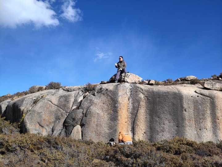2023年10月14日,郑喆轩(上)在四川甘孜藏族自治州海子山进行考古调查。新华社发
