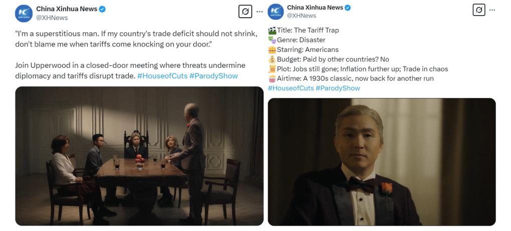 《扯牌屋》关税系列微电影在美政府大举发动关税战之际播发,受到英国广播公司等国际媒体关注。中国不惧打压但寻求对话合作的立场,与美国背信弃义、制造分裂和不稳定的作法形成鲜明对比,成为外媒关注焦点。