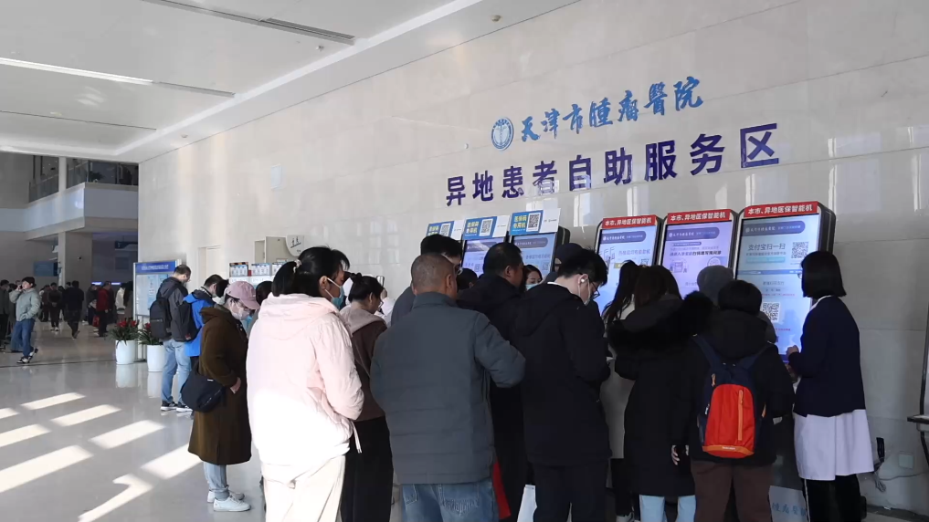 走进天津市肿瘤医院门诊大厅,入口旁即是异地患者自助服务区。自助机上,凭医保码(医保电子凭证)或社保卡,京冀患者可一站式完成挂号、缴费、医保直接结算等,享受与天津本地患者相同的就医体验。