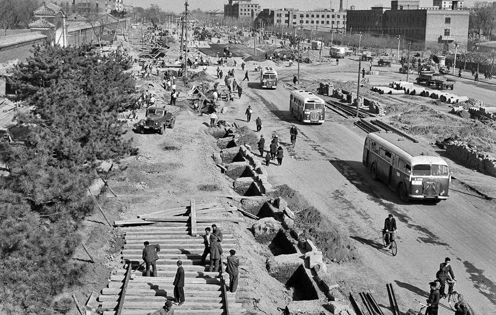 ↑1959年3月,北京东长安街改造现场。新华社发(中国照片档案馆馆藏)