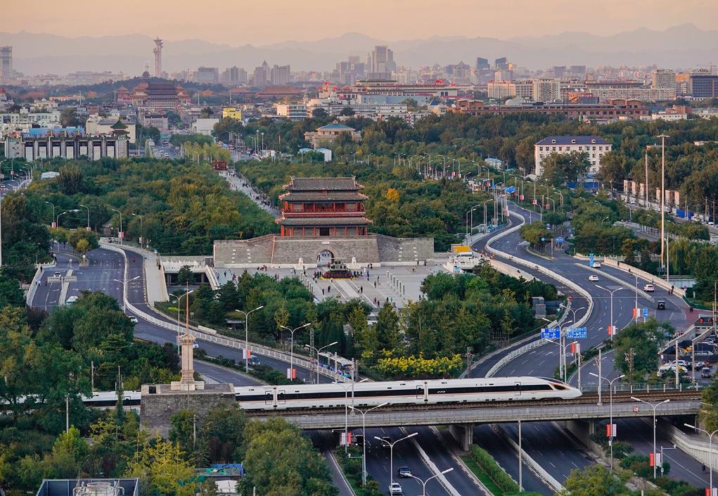 ↑2018年10月7日,复兴号高铁列车驶过北京永定门。新华社记者 邢广利 摄