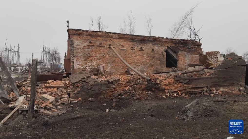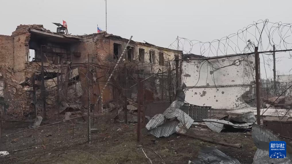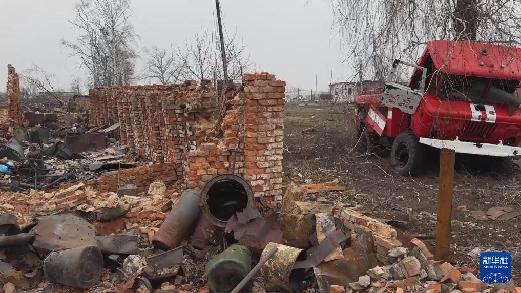 这张俄罗斯国防部3月13日发布的视频截图显示的是库尔斯克州一个定居点被损坏的建筑。新华社发(俄罗斯国防部供图)