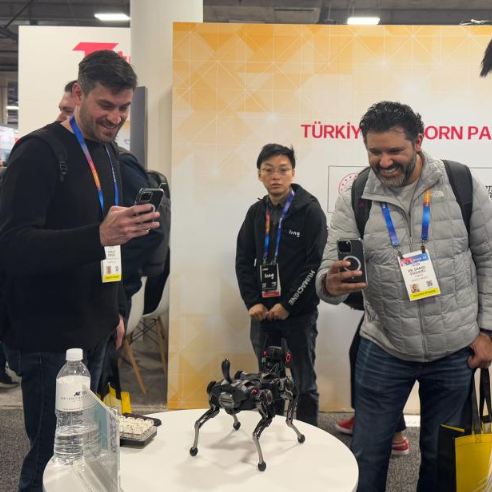 2025年国际消费类电子产品展览会(2025CES)上,恒之未来(重庆)创新科技有限公司研发的“哮天”机器狗受到关注(资料照片)。新华社发