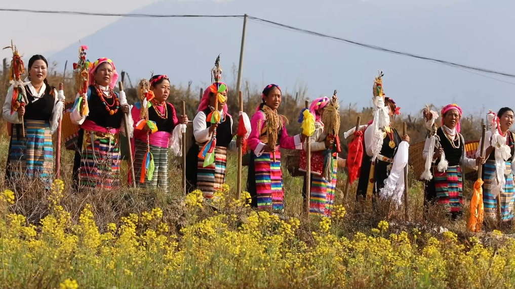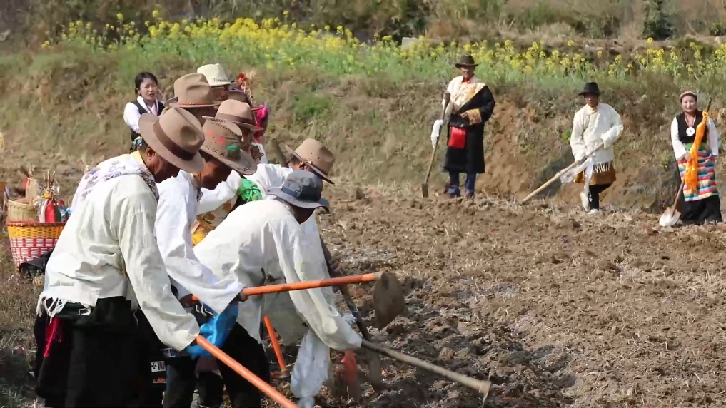 仪式现场,村民们遵循传统习俗,唱起悠扬的丰收歌,在田间地头犁地播种。