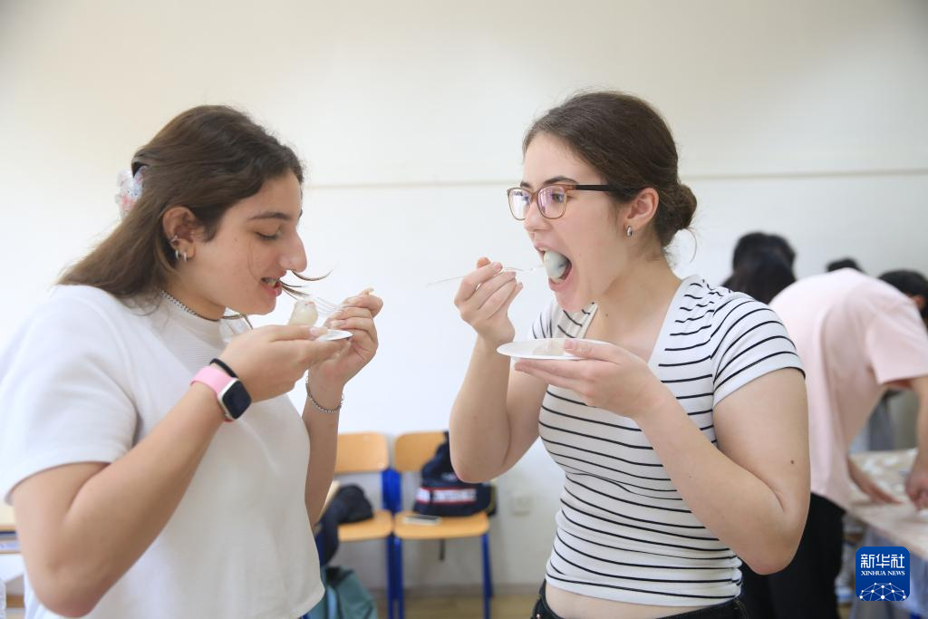 3月12日,学生们在马耳他姆西达品尝汤圆。新华社记者 陈文仙 摄