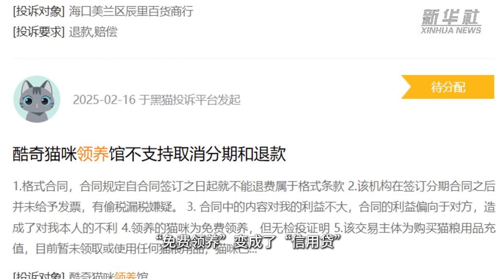 宠物免费送,但领养过程中消费者需签订24个月合同,每月必须购买店内提供的猫粮、狗粮等,费用按品种不同从200元至500元不等。网络上,一些消费者投诉自己被诱导签订分期付款服务,“免费领养”变成了“信用贷”。