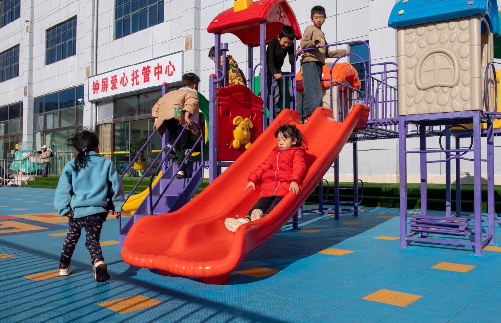 2025年1月21日,孩子们在云南省曲靖市会泽县钟屏街道为务工人员子女打造的爱心托管中心玩耍。新华社记者 江文耀 摄