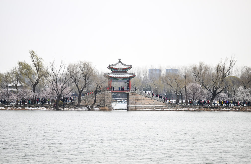 雪后颐和园西堤一景(2022年3月19日摄)。新华社记者 陈晔华 摄