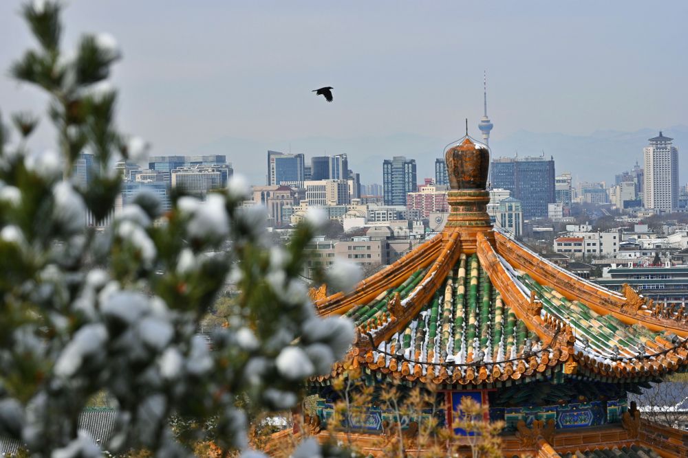 北海公园雪景(2022年3月19日摄)。新华社记者 罗晓光 摄