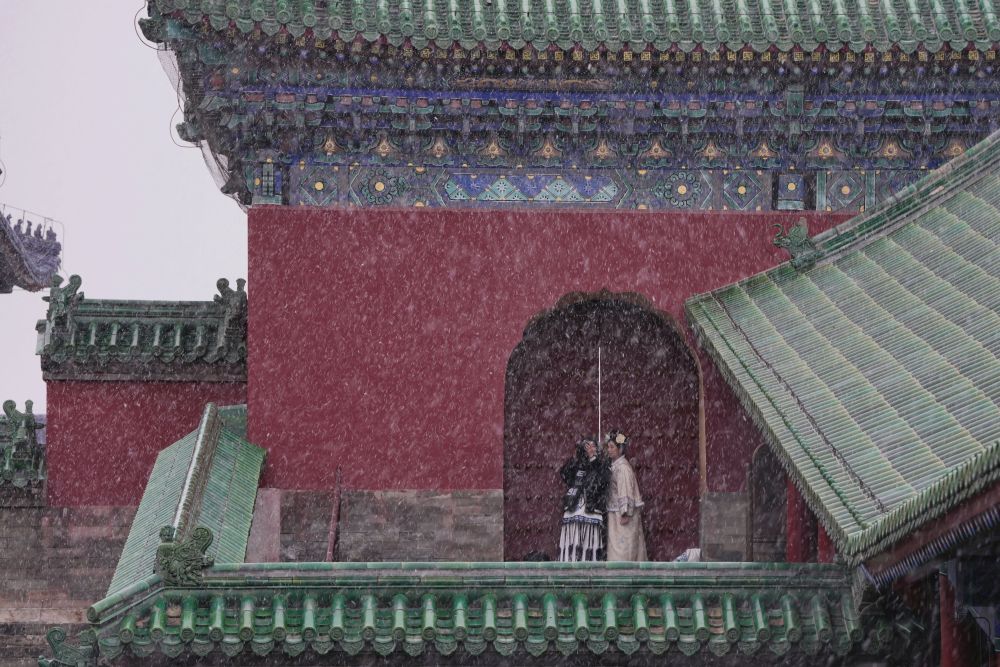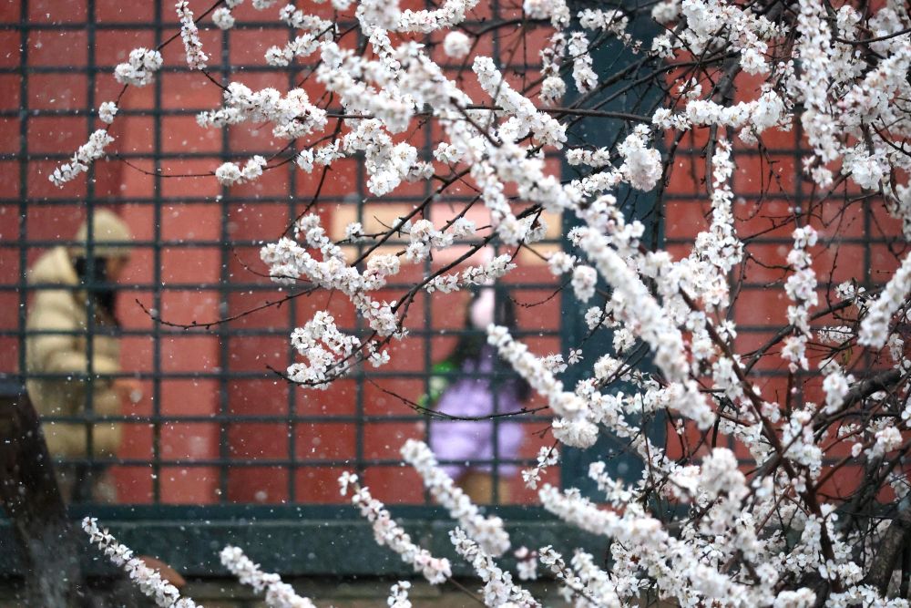 游客在雪中游览天坛公园(2025年3月15日摄)。新华社记者 鞠焕宗 摄