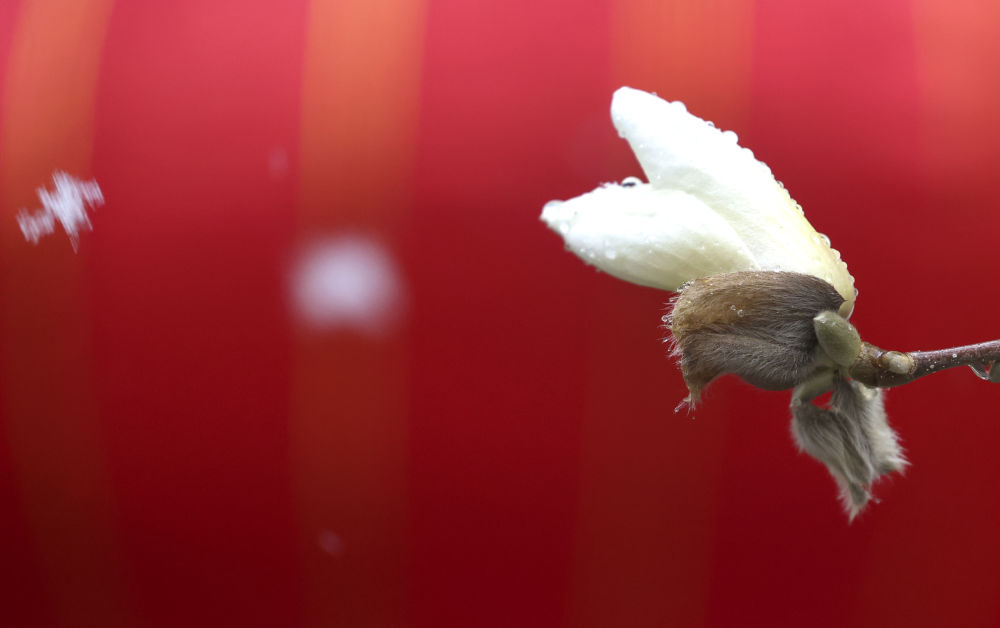 在北京市西城区拍摄的雪中的玉兰花(2025年3月15日摄)。新华社记者 庞兴雷 摄