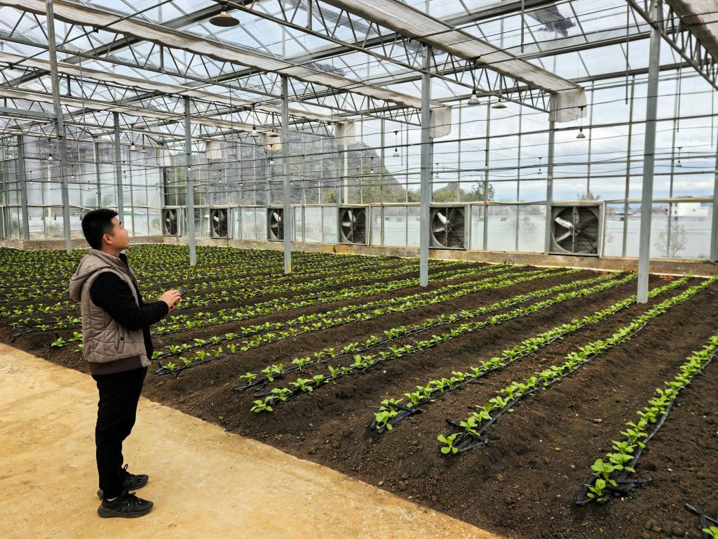 在广西贺州市平桂区国家现代农业产业园品种筛选适应棚内,技术人员陈愈璋轻触手机,蔬菜大棚的内遮阳网缓缓开启。“早春时节气温波动较大,有了物联网技术,可以随时调整遮阳网开合,效率提高了很多。”陈愈璋说。