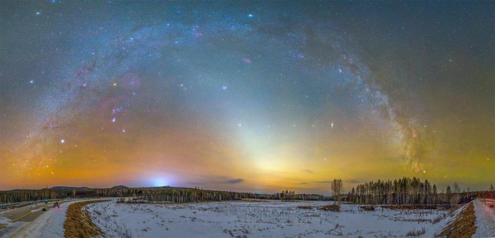 2019年3月7日在黑龙江大兴安岭十八驿站拍摄的银河与黄道光共舞。(刘成山摄 星联CSVA供图)