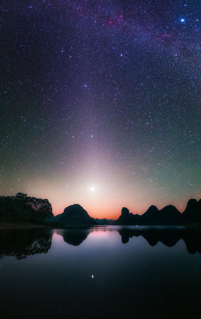 2020年10月22日在广西崇左大新县乔苗水库拍摄的黄道光。(王晋摄 星联CSVA供图)