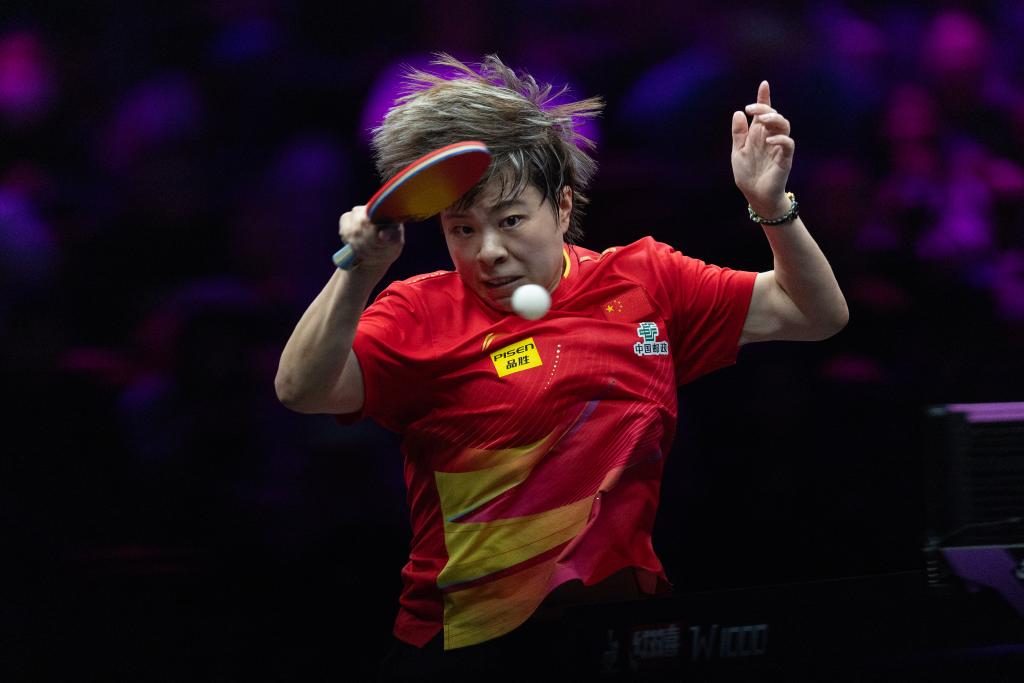 3月15日,孙颖莎在比赛中回球。新华社记者 唐奕 摄