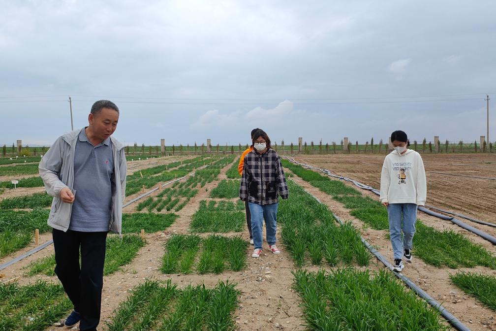 青海大学畜牧兽医科学院研究员徐成体指导学生在青海奔盛草业有限公司的饲草基地进行田间试验。(受访者供图)