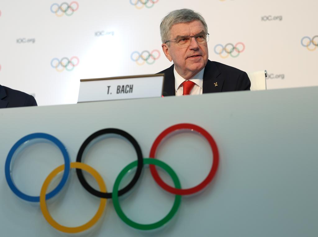 3月17日,国际奥委会主席巴赫在新闻发布会上。新华社记者 曹灿 摄