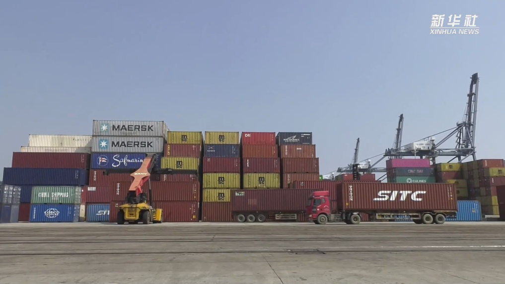 辽宁港口集团大连港是我国东北地区最主要的外贸集装箱枢纽港,记者在这里的集装箱码头看到,集装箱运输卡车排成一字长队,高耸的岸桥精准地将一个个集装箱吊起,摆放在“地中海艾罗安”轮上。
