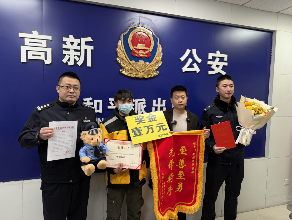 新华社成都3月18日电(记者薛晨)“感谢你协助公安机关成功侦破一起电信诈骗案件,帮助群众挽回损失。”18日上午,在成都市高新区和平派出所内举行了一场特殊的表彰会,外卖骑手小陈接过了公安机关的表彰信、受害人赖女士的感谢信和来自平台的一万元奖金和锦旗,成都市精神文明办的工作人员也送上了“平凡之善”荣誉证书。