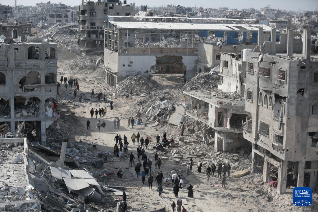 1月19日,巴勒斯坦人走在加沙地带杰巴利耶难民营。新华社发(阿卜杜勒拉赫曼·萨拉马摄)