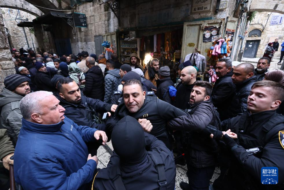 3月7日,在耶路撒冷老城,人们与警察发生冲突。新华社发(贾马尔·阿瓦德摄)