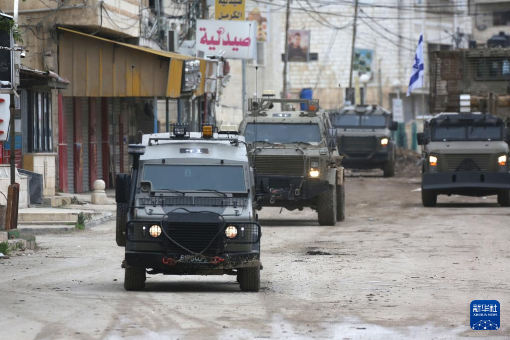 这是1月22日在约旦河西岸城市杰宁拍摄的以军车辆。新华社发(尼达尔·艾仕塔耶摄)