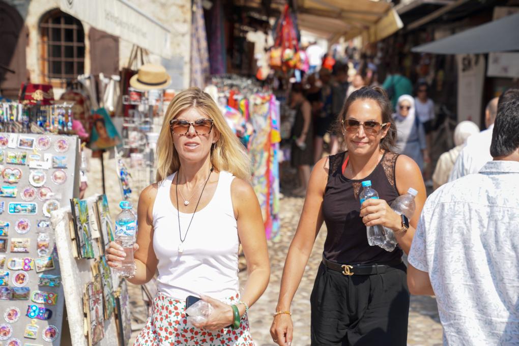 2024年7月24日,游客在烈日下游览波黑莫斯塔尔古城。新华社发(贾斯明·布鲁图斯摄)