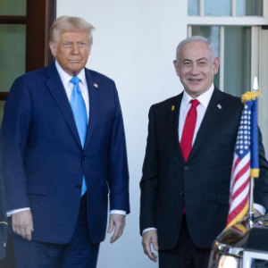2月4日,美国总统特朗普(中)与到访的以色列总理内塔尼亚胡在华盛顿白宫举行会晤。新华社记者胡友松摄