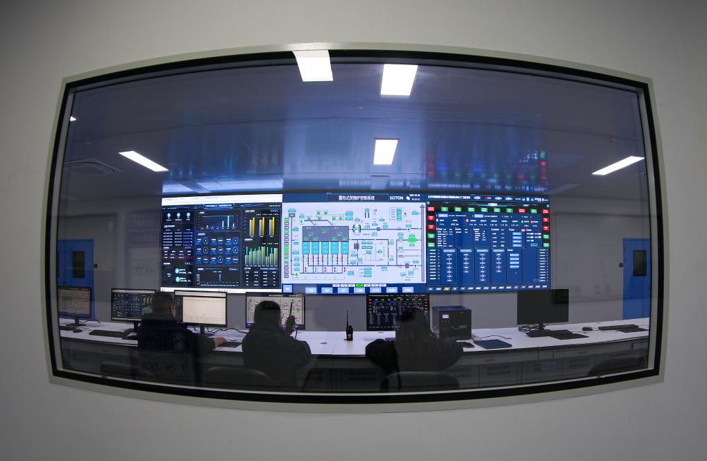 3月8日,工作人员在位于江苏盱眙的江苏宇特光电科技股份有限公司控制室监测生产流程。新华社发(王俊荣摄)