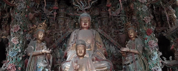 就像很多游客所说,游戏只是推手,小西天本身就有独特的文化吸引力。尤其是大雄宝殿,面积仅为169.6平方米,却容纳了近2000尊贴金悬塑,最小的佛像拇指大小。天宫楼阁层层叠起、栩栩如生,历经数百年仍保存完好,让人们可以领略古代悬塑之绝和匠心独运。