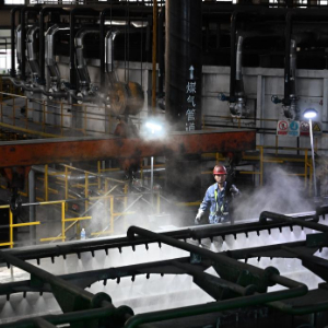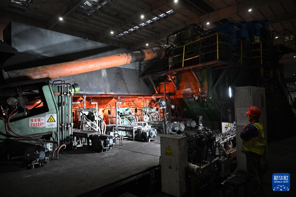 3月19日,工人在林州凤宝管业有限公司89连轧管厂生产线上作业。