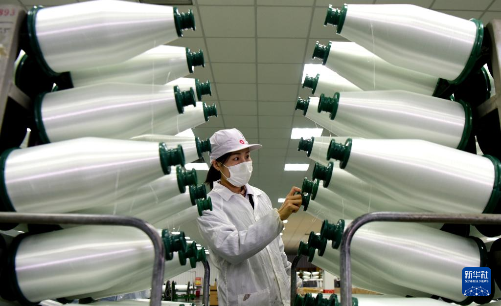 3月19日,工人在河南光远新材料股份有限公司电子布生产车间进行原丝巡检。