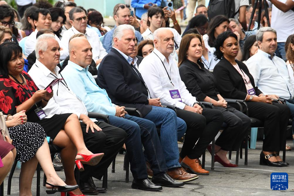 3月17日,古巴国家主席迪亚斯-卡内尔(前排右五)出席第四届古巴“祖国”国际对话开幕式。新华社发(华金·埃尔南德斯摄)