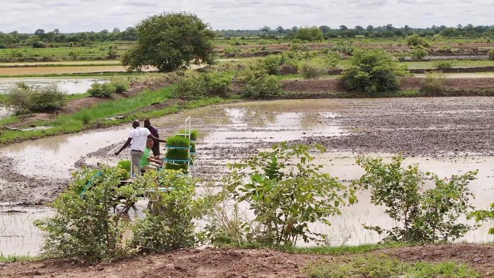 从水稻选种到种植,中国专家们手把手提供帮助,并引进插秧机、收割机等专业设备,将中国的高标准农田经验“复制”过来。