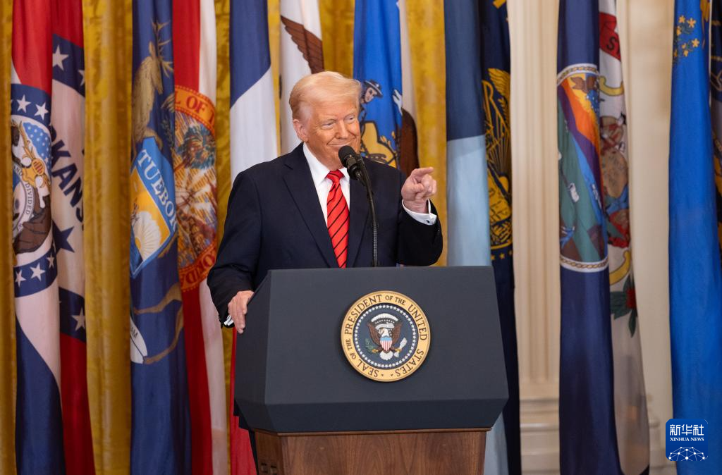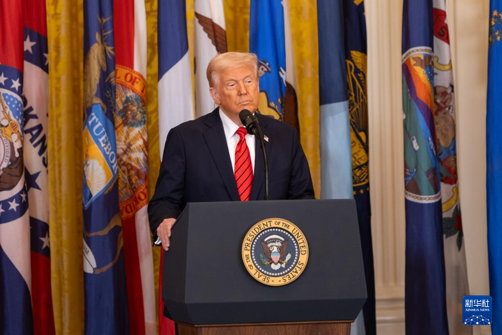 3月20日,美国总统特朗普在华盛顿白宫签署行政令前讲话。新华社记者 胡友松 摄