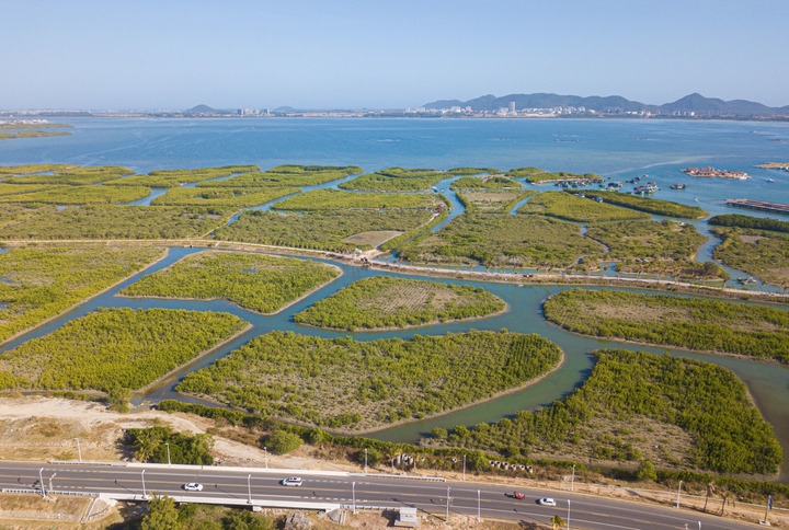 海南陵水红树林国家湿地公园,红树林与城市相得益彰。新华社记者 蒲晓旭 摄