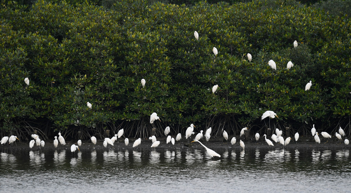 鹭鸟在海南东寨港国家级自然保护区内休息。新华社记者 杨冠宇 摄