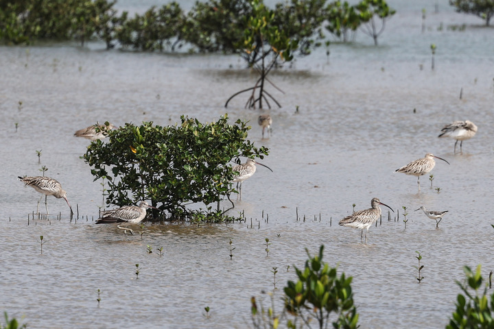海南新盈红树林国家湿地公园内,候鸟悠闲觅食。新华社记者 张丽芸 摄