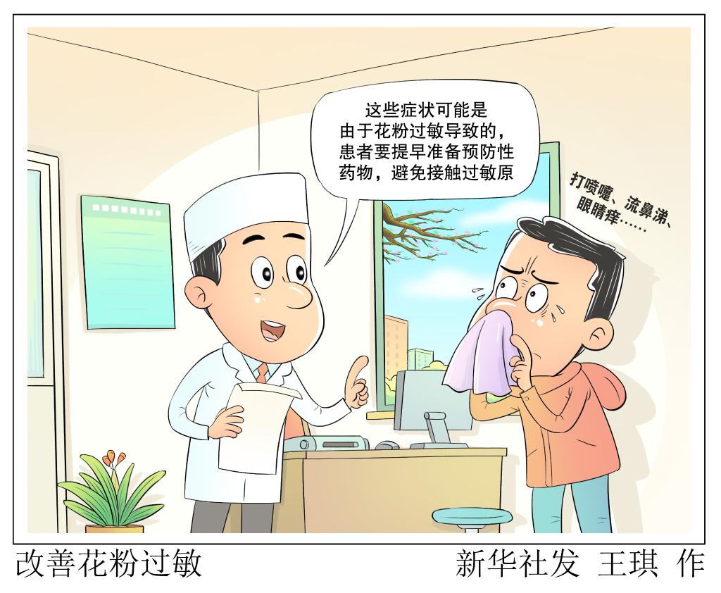 “由于吸入外界空气传播的花粉而引起的过敏反应被称作花粉症,它是一种常见的过敏性疾病。”首都医科大学附属北京世纪坛医院变态反应科主任医师马婷婷说,患者在吸入或接触到花粉后会发生以鼻黏膜、眼结膜等为主的一系列症状,包括鼻痒、打喷嚏、流清水样涕,部分人可伴有眼睛红肿、眼痒、咽痒、耳痒、上腭痒和咳嗽,严重者可出现胸闷气短,甚至呼吸困难。