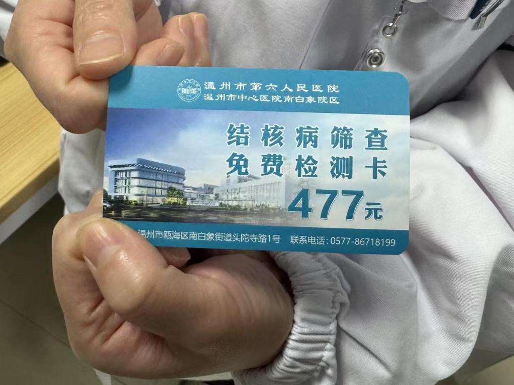 温州市第六人民医院结核科主治医师刘赛朵向记者展示当地结核病筛查免费检测卡。新华社记者 顾天成 摄