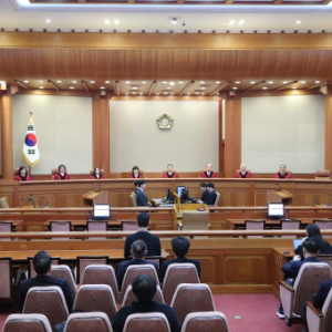 这是3月24日在韩国首尔的韩国宪法法院拍摄的弹劾案庭审现场。新华社记者姚琪琳摄