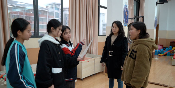 杨微微(右一)在老师、同学的帮助下练习。(受访者供图)