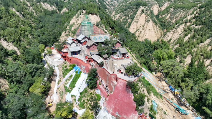 这是2024年9月12日拍摄的山西隰县小西天景区(无人机照片)。新华社记者 张哲 摄