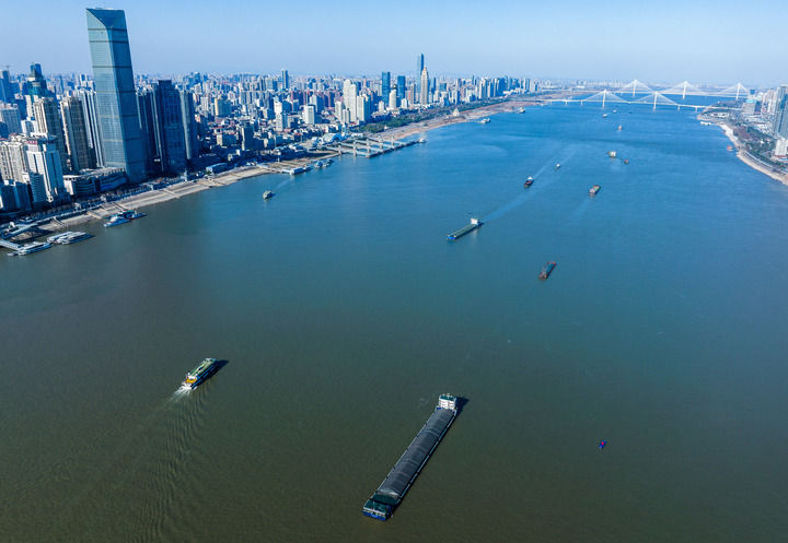 这是2024年1月23日拍摄的长江武汉江段水域(无人机照片)。新华社记者 肖艺九 摄